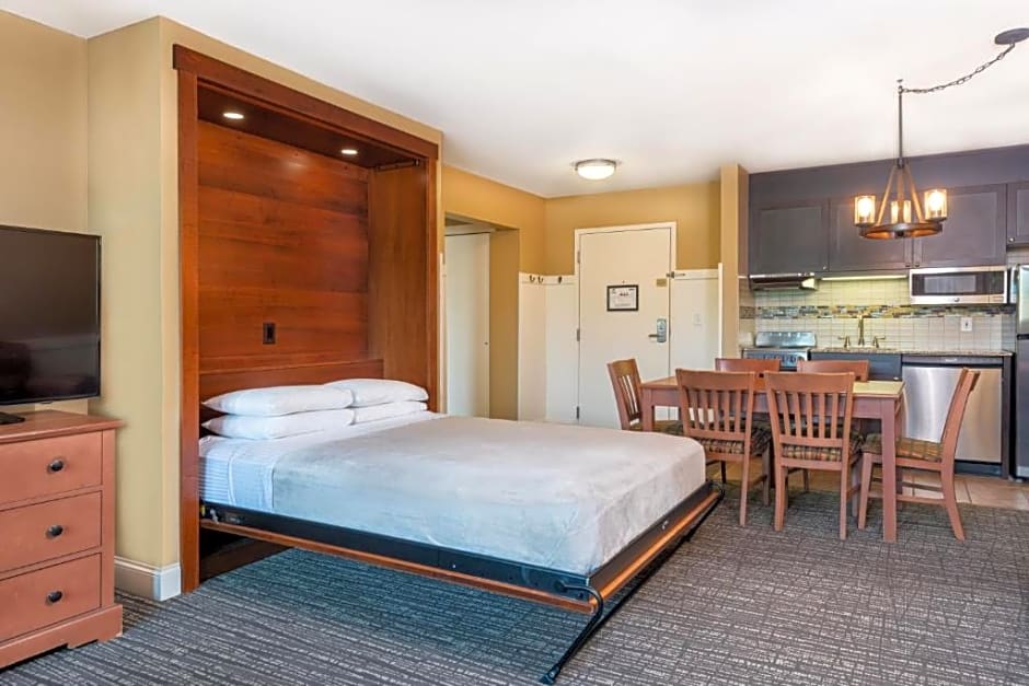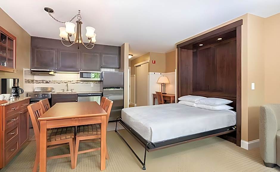 Bedding varies unit to unit (1 Queen or 1 King, 1 Sofa Bed, a murphy bed), 1 or 2 baths. Upgraded furnishings. Fully equipped kitchenette, dinette area, private bath, television, DVD player and phone.